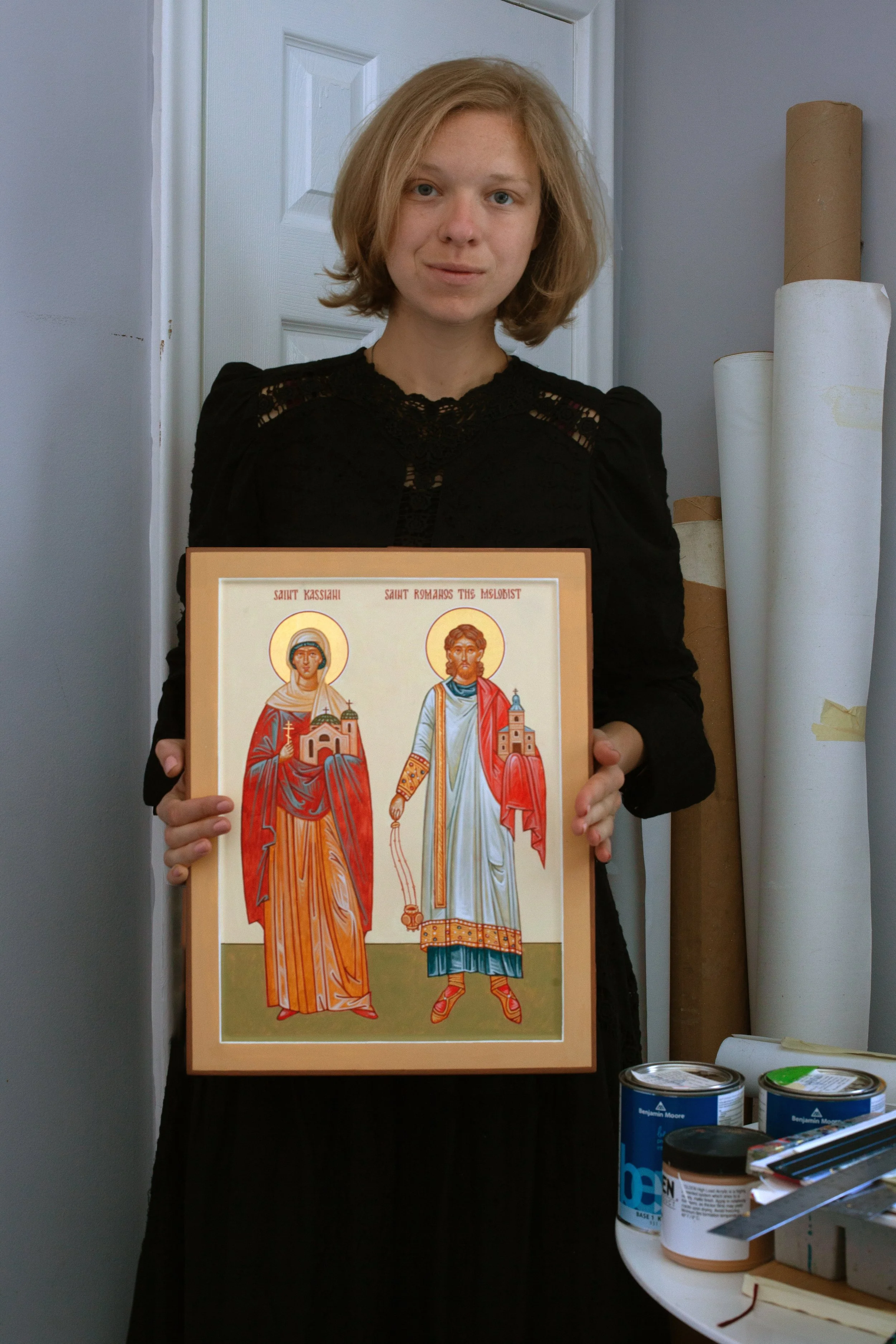 In 2009, she enrolled at Sheridan College, earning a Bachelor of Illustration degree in 2014.During her studies, she actively participated in major ecclesiastical installations—learning both the sacred and technical dimensions of icon painting through hands-on work on domes, scaffolding, and sanctuary walls. Since 2014, Ksenia has worked full-time at the Byzantine Icon Studio, contributing to the creation of murals, sanctuary decorations, and traditional icon panels for churches across the continent. Her work reflects a deep commitment to canonical integrity, visual harmony, and the spiritual vocation of the iconographer.